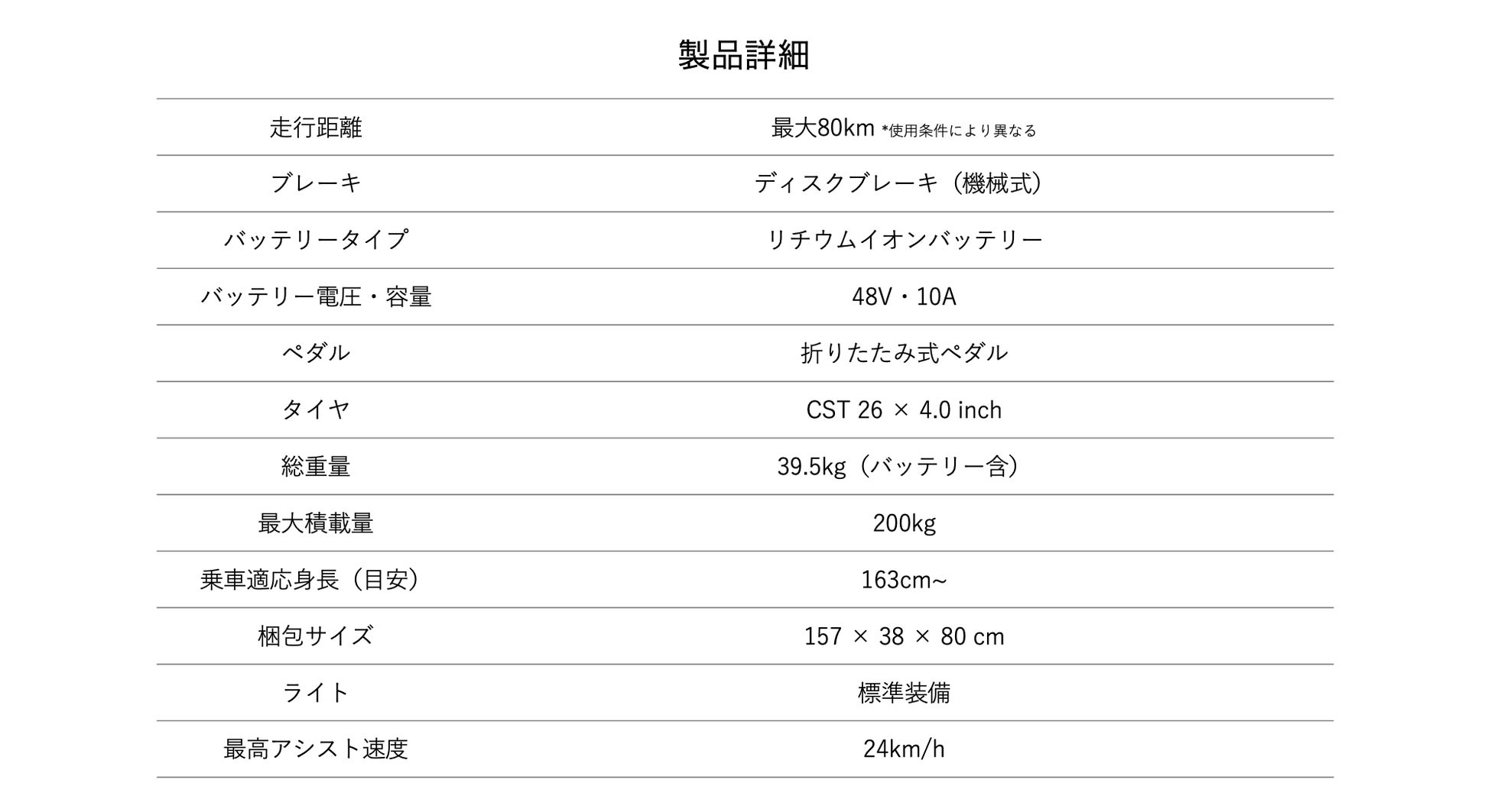 - 電動アシスト・サスペンション等の多機能なスペックが長時間の走行を快適に