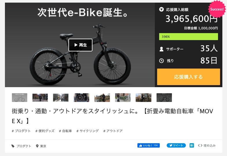 MOVE株式会社(本社:東京都港区、代表取締役社長:冨田大揮、以下MOVE社)は、スタイリッシュなe-Bike「MOVE X」を2/21(月)18時よりアタラシイものや体験の応援購入サービス「Makuake」にて先行販売を開始しました。商品公開後、約10分で目標金額に達成しました。(MOVE公式URL: https://move-ebike.co.jp/ )